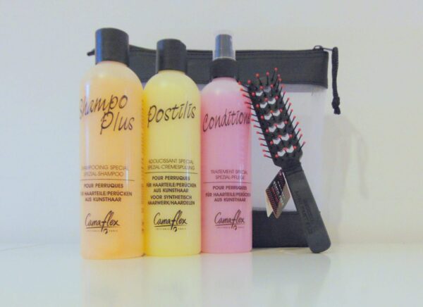 Shampoo Plus: Speciale shampoo voor pruiken van synthetische vezels. De shampoo bevat antistatische verzorgingsingrediënten om je pruik in perfecte staat te houden.
