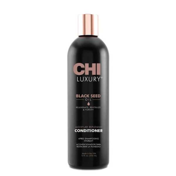 CHI Luxury Moisture Replenish Conditioner herstelt droog en beschadigd haar en voedt het met essentiële vitamines en antioxidanten. Dit geeft een glanzend zacht en pluisvrij resultaat. De toevoeging van Black Seed Oil beschermt het haar tegen invloeden van buitenaf.