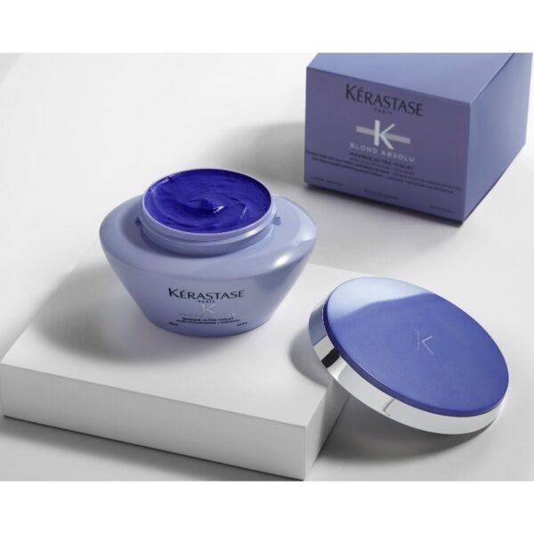 Kérastase Blond Absolu Masque Ultra-Violet Zilver haarmasker voor blond haar is ideaal voor ontkleurd, gehighlight en blond haar dat geneutraliseerd moet worden. Dit rijke, paars getinte masker gaat diep in de haarvezel om ongewenste gele ondertonen en koperkleuren te elimineren, terwijl het de vezels intens hydrateert en herstelt. De krachtige combinatie van Hyaluronzuur en Edelweiss verzacht het haar, en beschermt het tegen schadelijke invloeden en onzuiverheden. Dit niet-vlekkende haarmasker kan wekelijks gebruikt worden, of zo vaak als nodig om om uw blonde haar koel en helder te houden.