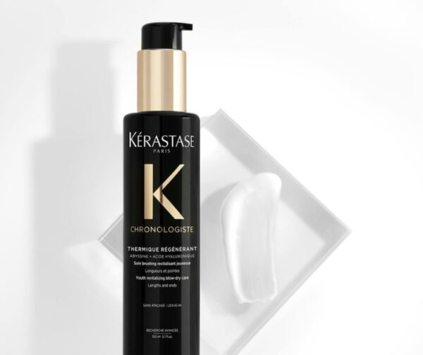 Kérastase Chronologiste Thermique Régénérant is een Hittebeschermende en zachtmakende leave-in, die de haartextuur verfijnt en de schubbenlaag verzegelt. Deze revitaliserende föhnverzorging zorgt voor een 24 uur lange frizz-controle, sublieme gladheid en tot 230°C hittebescherming. De formule is doordrenkt met Hyaluronzuur, Abyssine en Vitamine E, om de tekenen van veroudering van het haar te bestrijden. Styling wordt vergemakkelijkt en het haar heeft een jeugdige veerkracht en levendigheid. Thermique Régénérant is een zintuiglijke ervaring, met de kenmerkende Chronologiste-geur van Theeroos, Licht Hout en Musk.