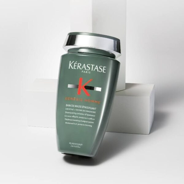 Genesis Bain de Masse Épaississant van Kérastase is een haarverdikkende volume shampoo voor mannen voor verzwakt, gevoelig en uitgedunt haar. Aangedreven met een cocktail van zeer efficiënte ingrediënten (creatine & gemberwortel) om de haarvezel onmiddellijk te versterken en te verdikken voor een onmiddellijke vollere look met 5x voller haar. Resultaten: +85% minder breuk en meer weerstand. +38% meer volume. +28% zachter haar.